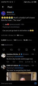 At 4:42 am, a fan who tweets as @iretomiwa03 asked if Wizkid could revert to when he used to be very active and interactive on X. The fan wrote, “Can you just go back to old Twitter wiz”, to which the ‘Holla at your Boy’ singer responded by saying “That’s a bully! Let’s leave him for now”