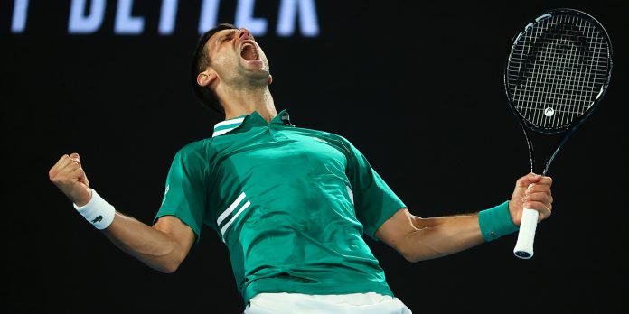 Second seed Djokovic won 6-3 6-4 7-6 (7-4) against the Italian 8th seed, leaving him one victory away from a record-equalling eighth men’s title.