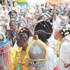 Paetongtarn Shinawatra takes oath as Thailand’s youngest-ever Prime Minister, surrounded by supporters and party leaders.