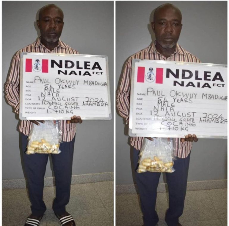 The National Drug Law Enforcement Agency (NDLEA) confirmed that the suspect,Paul Okwuy Mbadugha, was apprehended during a routine screening of passengers.