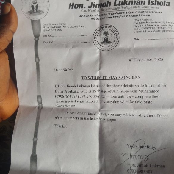 December 23, 2025By Ayinde Adeleke A resident of Oyo State, Ayoade Ojeniyi, has accused a member of the Oyo State...