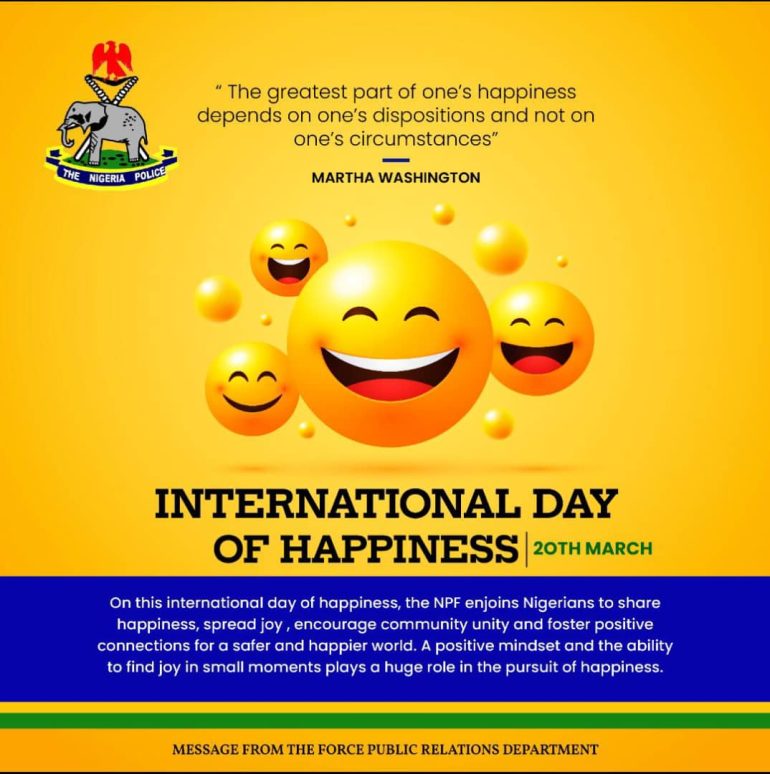 The Nigeria Police Force has encouraged Nigerians to adopt a “Don’t Worry, Be Happy” outlook in celebration of the International Day of Happiness, emphasizing the importance of positive approach and finding joy in small moments.