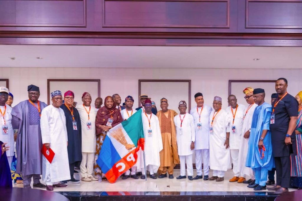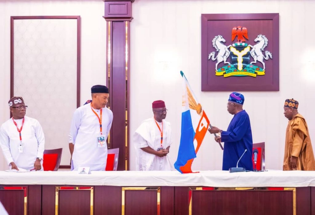 President Bola Tinubu on Monday, March 18, presented the All Progressives Congress (APC) flag to the party’s candidate, Monday Okpebholo, for the upcoming gubernatorial election in Edo State, scheduled for September 2024.