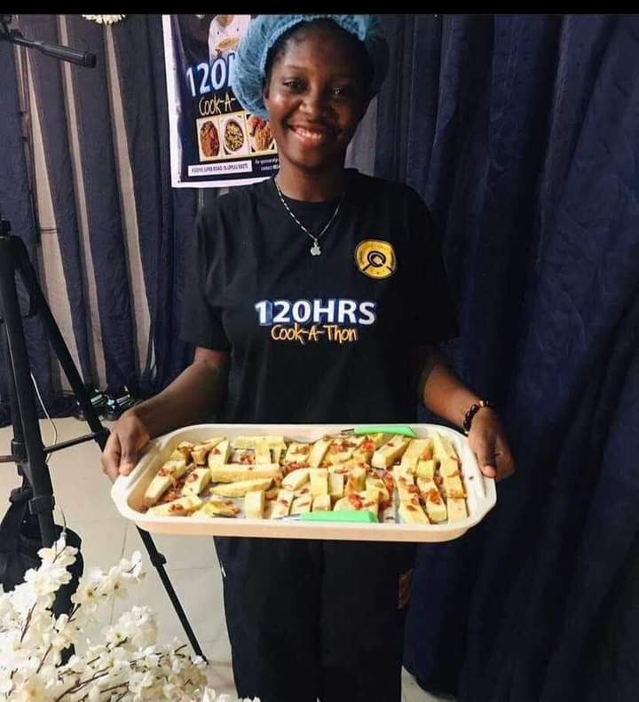 On Sunday, the determined chef, Miss Damilola Adeparusi, from Ekiti, continued her ambitious pursuit to break the Guinness World Record for the longest cooking marathon. Currently a student at Federal University, Oye-Ekiti (FUOYE), she achieved a remarkable feat of cooking for 60 consecutive hours in her Cook-a-thon kitchen, located in an apartment in Ilupeju community, Oye Local Government Area of Ekiti State.