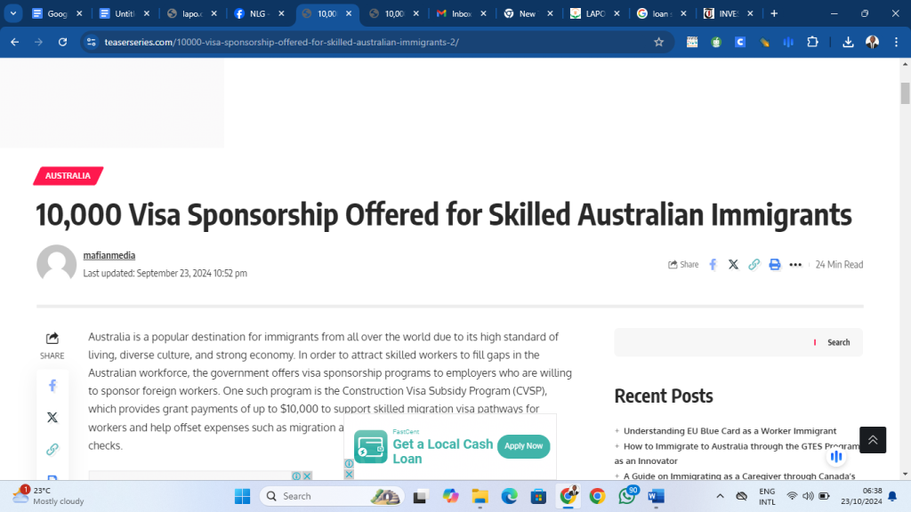 When we clicked on Lapo.com, a weblink attached with the advertisement on the facebook handle, it directed us to an isolated website, which only has two contents, which are “HOW TO GET LAPO LOANS, CLICK TO START HERE”. When we followed the direction given to us, we were redirected to a completely different website “TEASER SERIES”, a websit that is used to advertise relocation to Australia, with the front page that is captioned “10,000 Visa Sponsorship Offered for Skilled Australian Immigrants”.