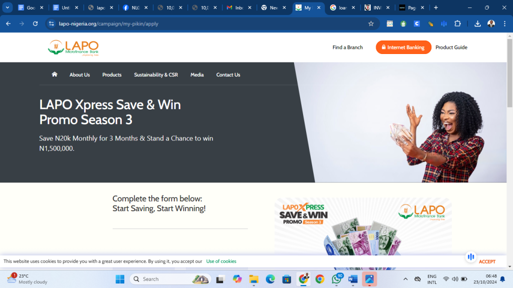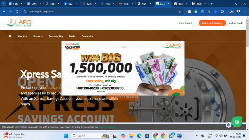 For clarity and to ascertain the truth, we visited the LAPO official website for comparison and we noticed that the website has a different interface from the one advertised on Facebook. The home page of the official website of the microfinance bank has information about its operations and some ongoing promotions that they are currently running.