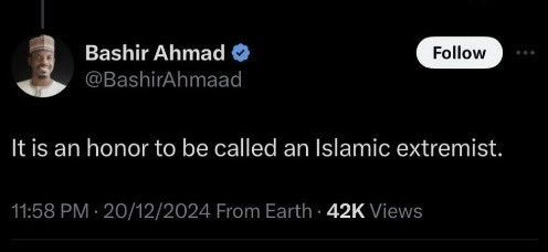 Bashir Ahmad, a former aide to ex-President Muhammadu Buhari, has sparked controversy with his recent tweet, where he claimed to be “honoured” to be labelled an Islamic extremist.