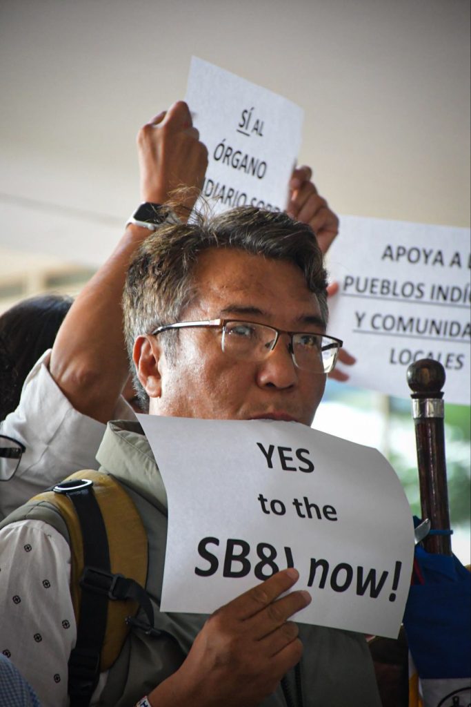 The protest which highlights the importance of recognizing and protecting the rights of IPLCs in biodiversity conservation saw hundreds of placards bearing messages such as “Yes to SB8j now” emphasizing the urgent need for action.