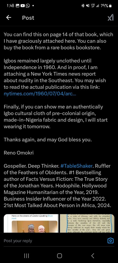 Furthermore, Omokri emphasized that the Igbo people were largely unclothed before colonial influence.