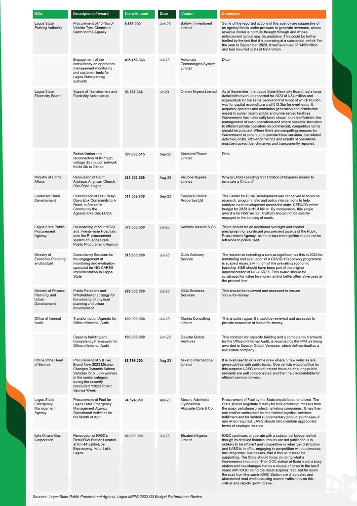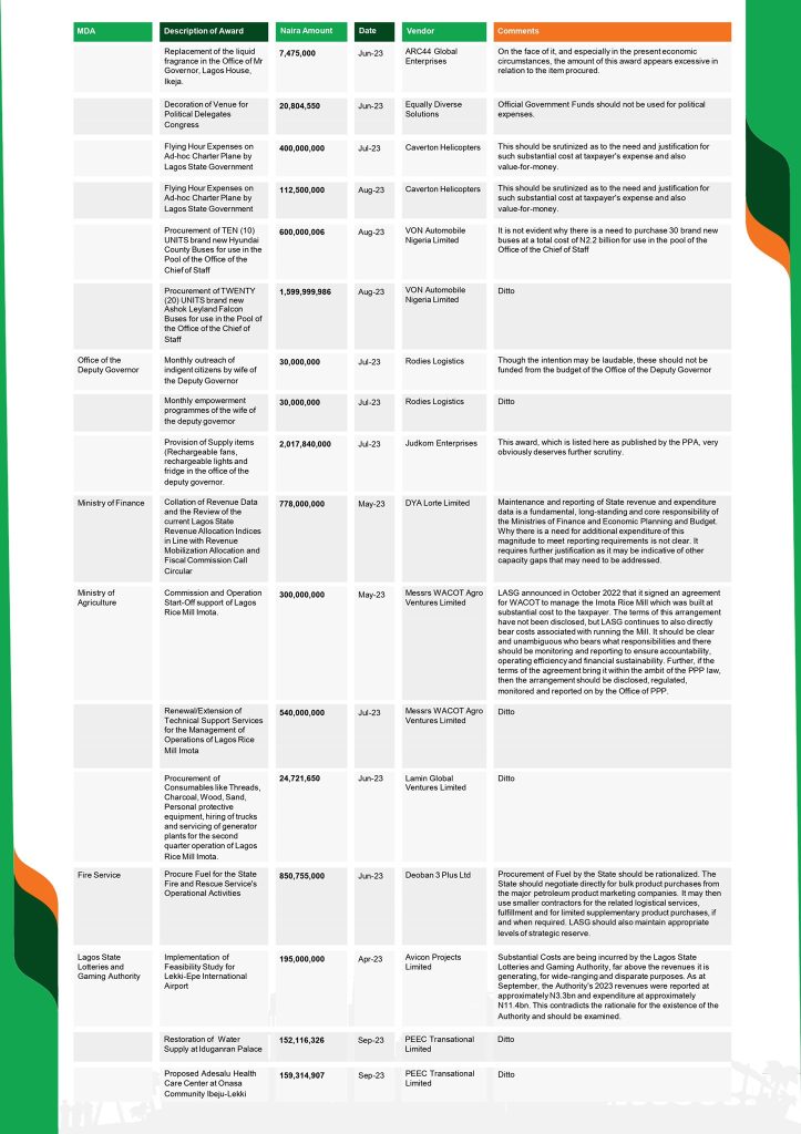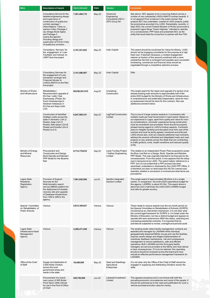 “I have had the opportunity to go through the register of public procurement awards by LASG, its ministries, departments and agencies for the second and third quarters of 2023, as reported by the Public Procurement Agency.