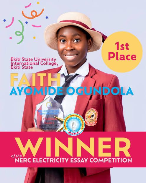 The Ekiti State Governor, Biodun Oyebanji, has commended Miss Faith Ayomide Ogundola, a student of Ekiti State University (EKSU) International College, for emerging as the overall best in the 2024 Energy Essay Competition organized by the National Electricity Regulatory Commission (NERC).