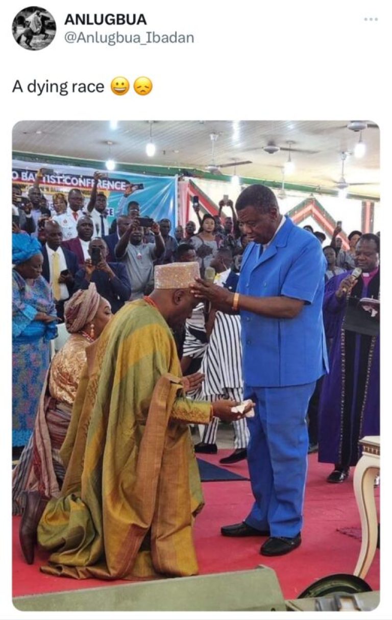 The picture, captured during an interdenominational thanksgiving service for the new Soun at Beulah Baptist Conference in Ogbomoso, has raised different reactions.