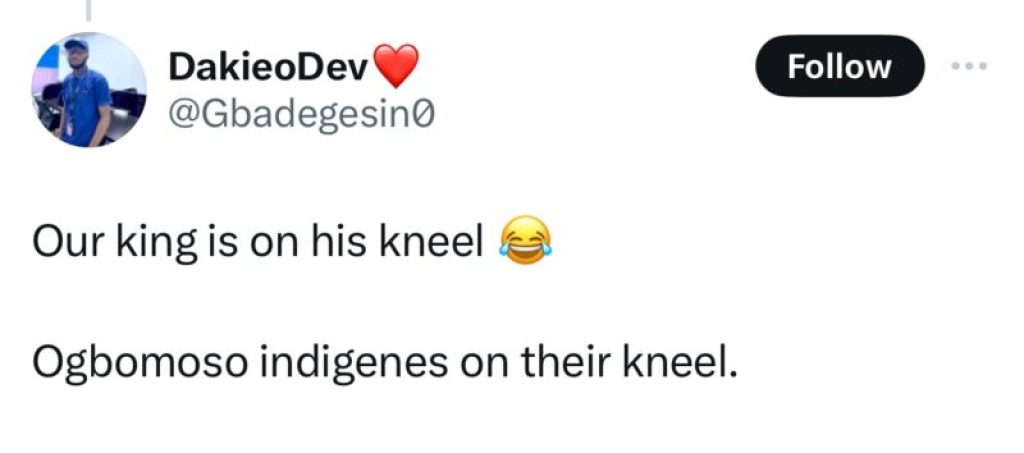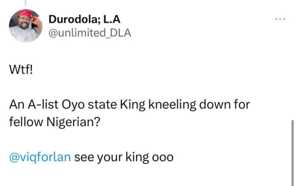 The recent emergence of a viral picture showing the newly installed Soun of Ogbomoso, Oba Ghandi Olaoye, kneeling before Pastor Enoch Adeboye, the General Overseer of the Redeemed Christian Church of God, has sparked negative reactions from the public.