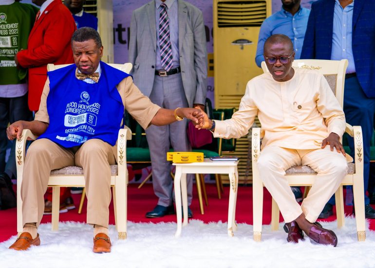 Lagos State governor, Babajide Sanwo-Olu, last Sunday attended “The Outpouring” service hosted by Dunsin Oyekan at the Onikan Stadium, Lagos.