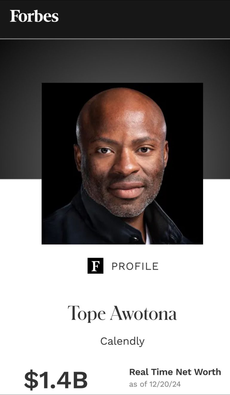 Awotona, 43, is the Founder and CEO of Calendly, a scheduling software startup valued at $3 billion in 2021. After working as a salesman for several tech firms and launching a few failed startups, Awotona cashed in his 401(k) in 2013 to found Calendly.