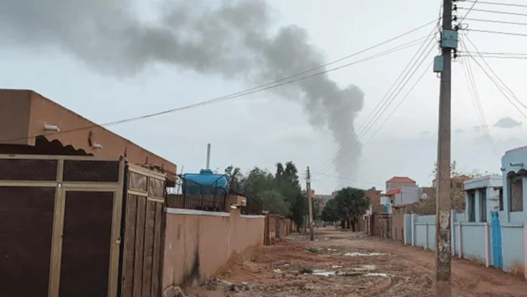 Smoke billows in the distance during ongoing fighting in Khartoum Β© – / AFP